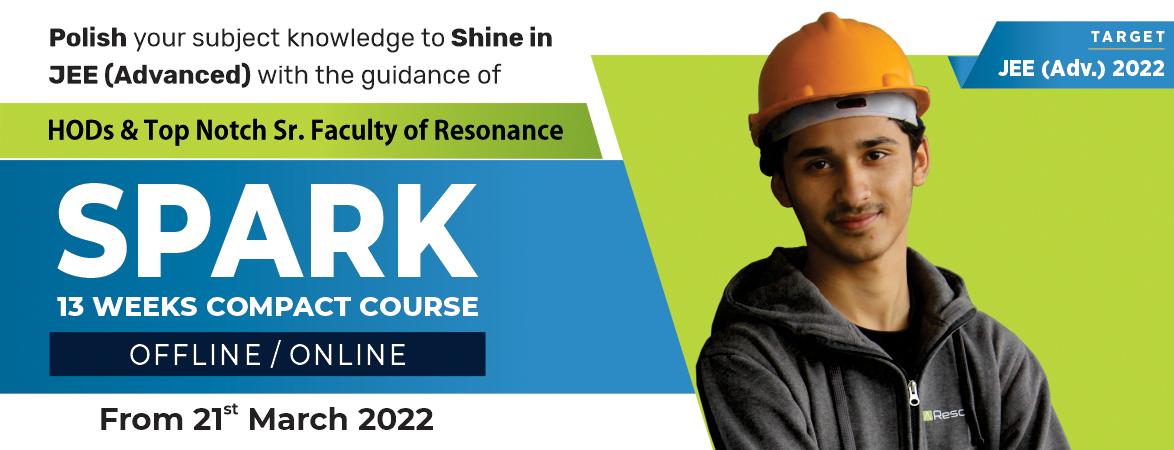 Spark is a compact course for XII passed students targetting JEE Advanced 2022. Course will be available in OFFLINE & ONLINE both modes.