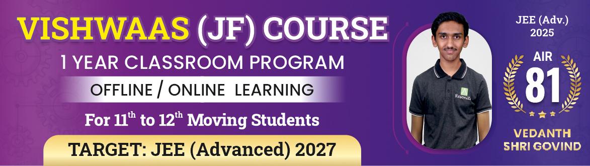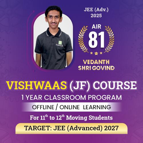 📚 'VISHWAAS' Course is specially designed for focused JEE Advanced preparation for students moving from class 11th to 12th. The course covers complete syllabus of class 11th & 12th and students will also be guided to prepare for 12th board examination.