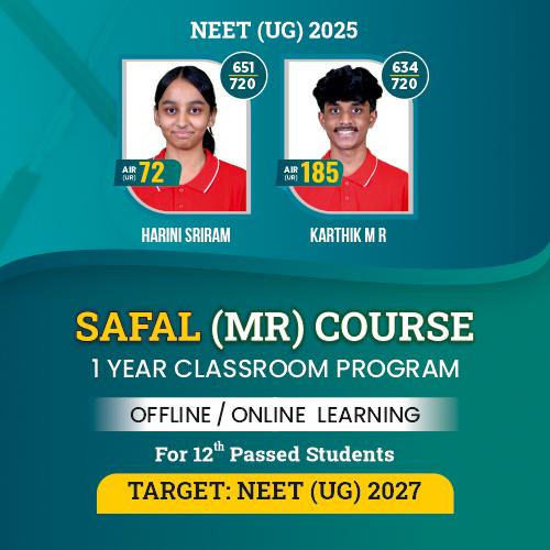 📚 'SAFAL' Course is specially designed for class XII passed students who are willing to take a break for preparation of NEET (UG) examination. It is an immediate help to those students who have not undergone specialised Coaching/Training for NEET (UG) during their Class 11th & 12th. The Course completely brushes up the fundamentals and covers the entire syllabus with all the tools & techniques, for cracking NEET (UG) with flying colours.