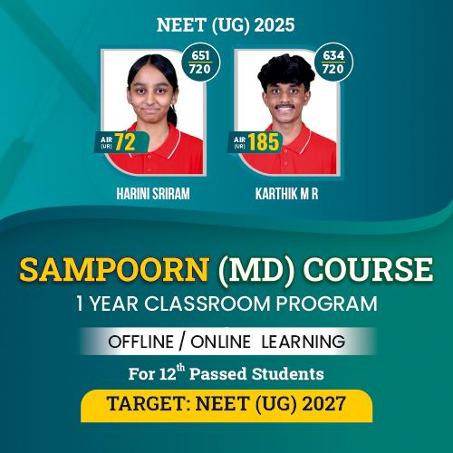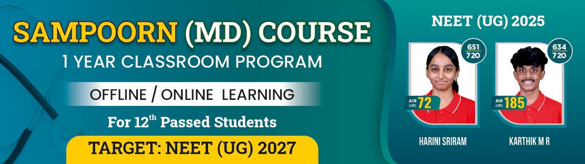 📚 'SAMPOORN' Course is specially designed of students who would be clearing their class 12th Board exams and are willing to take a break for preparation of NEET (UG) examination. It is an immediate help to those students who have not undergone specialised Coaching/Training for NEET (UG) during their Class 11th & 12th. The Course completely brushes up the fundamentals and covers the entire syllabus with all the tools & techniques, for cracking NEET (UG) with flying colours.