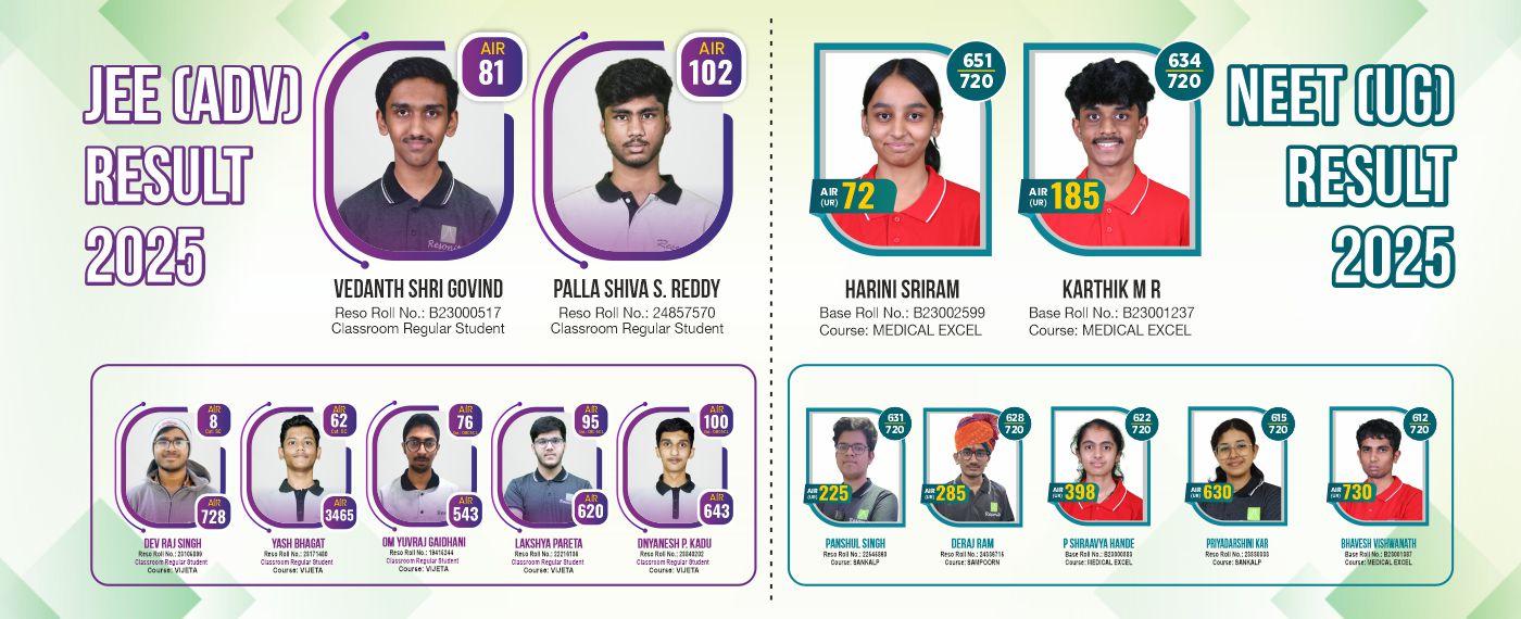 Since 2001, Resonance has been one of India's most trusted names for the preparation of various competitive examinations. The results speak for themselves –